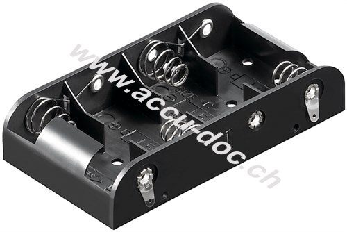 4x C (Baby) Batteriehalter, Lötfahne (U), Schwarz - Lötfahne (U)