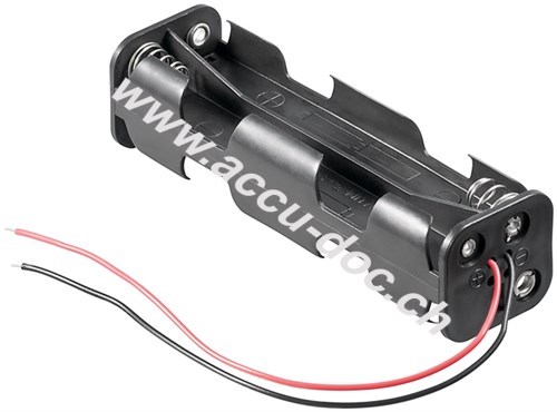 8x AA (Mignon) Batteriehalter, Schwarz - lose Kabelenden