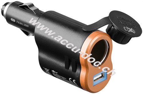 2in1 Auto USB-Poweradapter, Gold-Schwarz - cleveres 6 A USB-Netzteil und 12 V-Buchse in einem