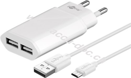 Goobay Micro USB Dual Ladeset 2,4 A, Weiß, 1 m, Plastiktüte - Netzteil mit 2x USB-Buchse und Micro USB Kabel 1m (Weiß)