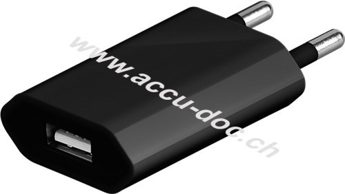 USB Ladegerät 1 A, Schwarz - mit 1x USB-Buchse, flache Bauform