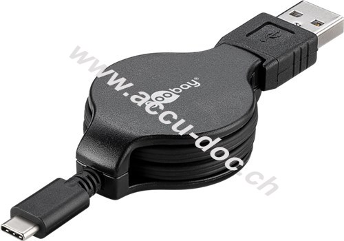 Goobay USB-C™ Lade- und Synchronisationskabel, ausziehbar, Schwarz, Plastiktüte - für Geräte mit USB-C™-Anschluss, schwarz