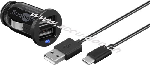 Goobay Dual-USB Auto-Ladeset USB-C™ (12 W), Schwarz, Plastiktüte - Kfz-Ladeadapter mit 2x USB-A-Anschlüssen, USB-C™-Kabel, 1 m, schwarz
