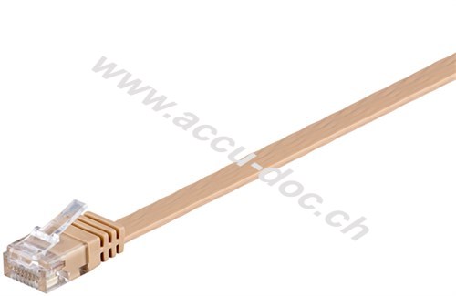CAT 6 Flach-Patchkabel, U/UTP, hellbraun, 0.5 m - Kupferleiter (CU)