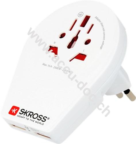 Skross Country Adapter World to Switzerland+Italy+Brasil USB*, Weiß, Klapp-Blister - geeignet für alle geerdeten und ungeerdeten Geräte (2- und 3-polig)