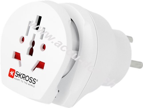Skross Country Combo World to Denmark, Dänemark-Stecker (Typ K, DS 60884-2-D1), Weiß, Klapp-Blister - geeignet für alle geerdeten und ungeerdeten Geräte (2- und 3-polig)