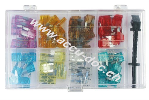 Kfz Sicherungssortiment, 101 tlg. - Maße der Kfz-Sicherungen: 16,7 x 11,2 x 3,81 mm