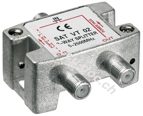 SAT-Verteiler, 2-fach, 2 x out, Silber - für Satellitenanlagen 5 MHz - 2400 MHz