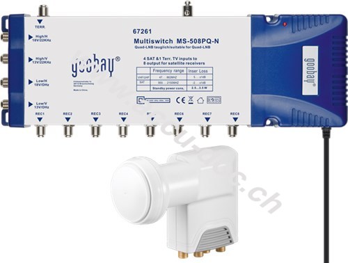 LNB/Multischalter-Set, Silber-Weiß - Quattro LNB plus Signalverteiler für bis zu 8 Teilnehmer