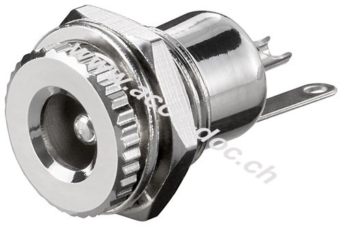 DC-Einbaubuchse - Stift 2,5 mm, Metallausführung mit Lötfahnen