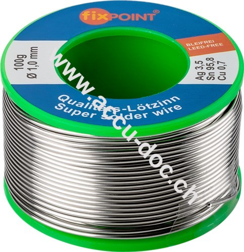 Profi-Lötzinn bleifrei, ø 1,0 mm, 100 g - Zusammensetzung: 3,5 % Silber, 0,7 % Kupfer, 95,8 % Zinn, Flussmittelanteil: 2,5 %, Schmelzpunkt 217 °C