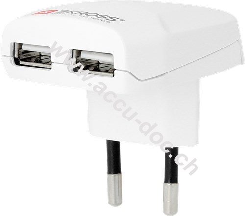 Skross Euro USB Charger, Weiß, Klapp-Blister - lädt schnell und gleichzeitig bis zu zwei USB Geräte (2,4A)