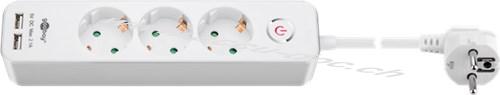 Goobay Steckdosenleiste 3-fach mit Schalter und USB, Weiß, Hängbarer Karton - bis zu 2x USB-Geräte und 3x Elektrogeräte anschließbar