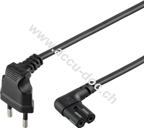 Anschlusskabel Eurostecker beidseitig abgewinkelt, 3 m, Schwarz, 3 m - Eurostecker (Typ C, CEE 7/16) > Gerätebuchse C7