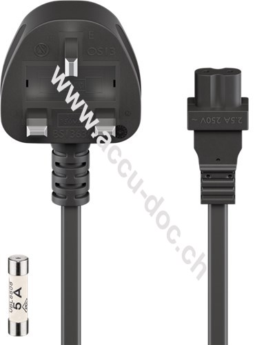 Goobay UK - Netzanschlusskabel, 2 m, Schwarz, 2 m, Plastiktüte - UK 3-Pin-Stecker (Typ G, BS 1363) > Gerätebuchse C7