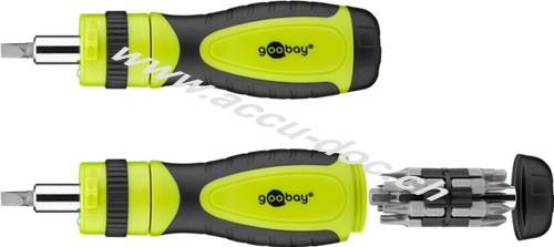 Goobay 14-teiliges LED-Ratschenschrauber-Set, Klapp-Blister - im Dunklen arbeiten dank integrierter LED-Leuchte